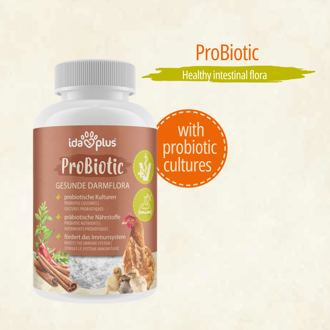 ProBiotic is specially formulated to promote and maintain a healthy digestive system in chickens. This advanced supplement combines prebiotics, probiotics, functional herbs (cinnamon, chili, oregano), and essential vitamins to naturally enhance intestinal flora and improve nutrient absorption.