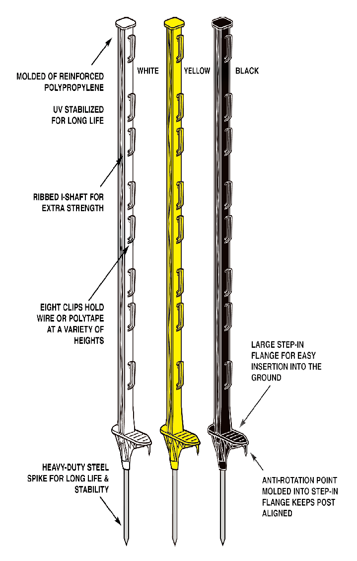 Upgrade your fencing setup with our 4 ft Plastic Step-In Electric Fence Posts—designed for both temporary and semi-permanent fencing applications. These versatile posts are perfect for: