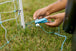 Simply connect the ground (⏚) terminal of the fence energizer to the connection point on the bottom strand of the +/- netting, and connect the positive (🗲) terminal to the connection point near the top strand of the netting.